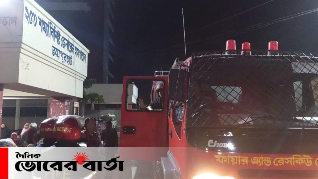 ২৫০ শয্যা বিশিষ্ট জেনারেল হাসপাতাল জয়পুরহাটের তত্ত্বাবধায়ক ডা: সরদার রাশেদ মোবারক বিষয়টি নিশ্চিত করেছেন। তিনি বলেন, আগুন লেগে যাওয়ার ধোঁয়া হয়। এতে রোগী ও স্বজনরা আতঙ্কে হাসপাতালের ওয়ার্ড ছেড়ে বাইরে যান। কিছু সময় পর আগুন নিভিয়ে ফেলা হয়। এতে কোন ক্ষয়ক্ষতি বা কেউ আহত হননি।